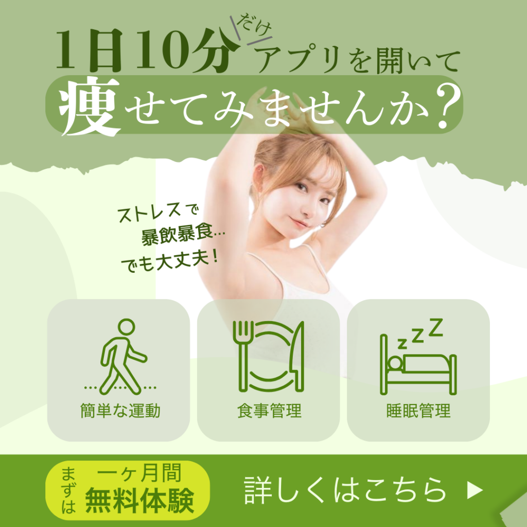 忙しくてストレス多い生活で、なかなかダイエットが続かない…という女性に向けてのバナーです。